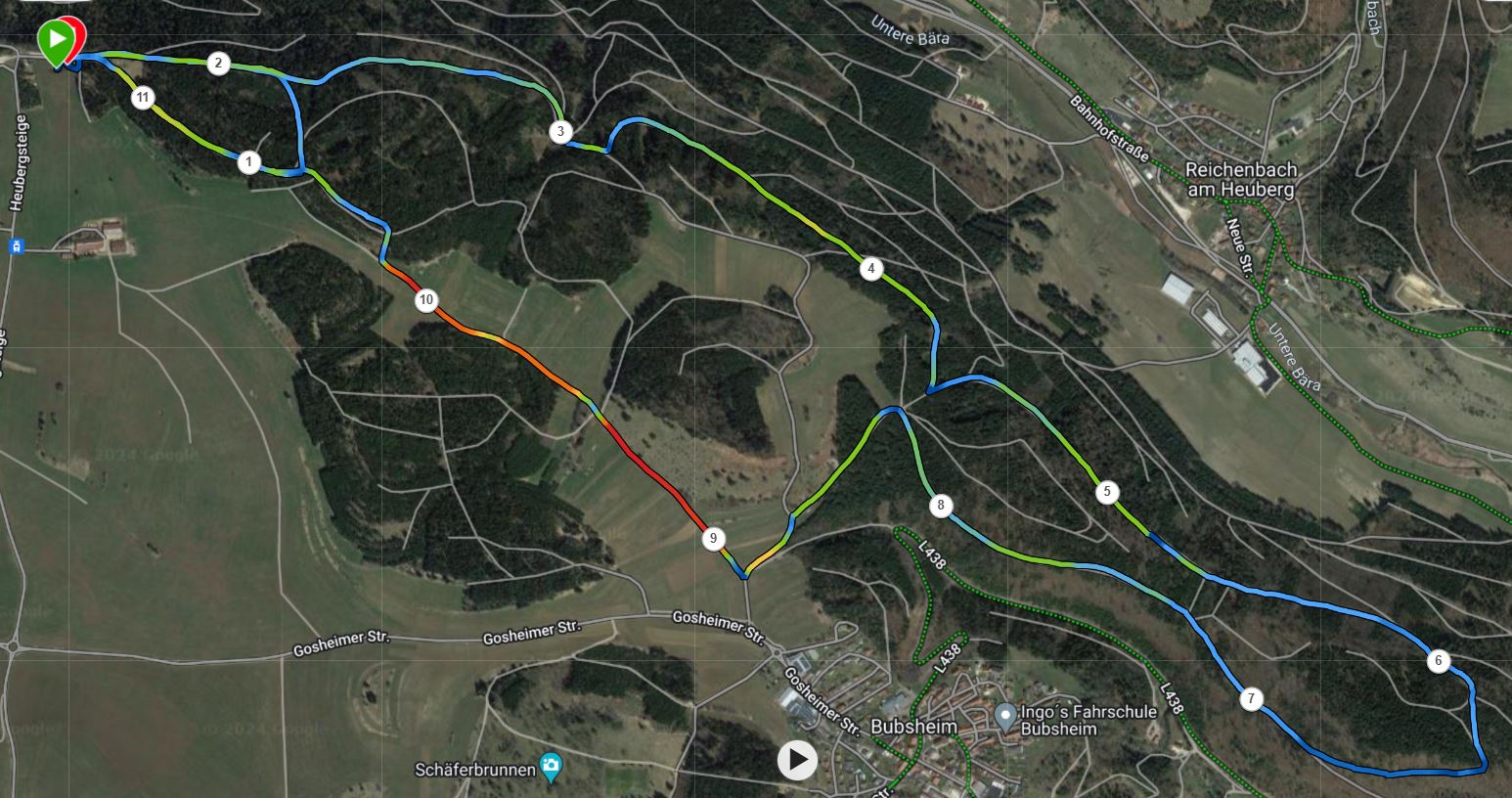 Die Hauptläufer laufen die Jedermannstrecke zweimal. Der Lauf geht auf der Höhe von Reichenbach nach Bubsheim und dann über den Gemeindeverbindungsweg zurück zur Skihütte.