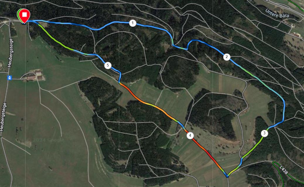 Die Strecken verlaufen auf geschotterten Waldwegen. Der Rückweg erfolgt auf den letzten 3 Km auf dem asphaltierten Gemeindeverbindungsweg.